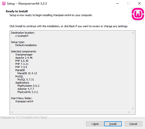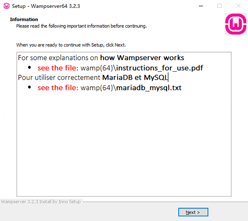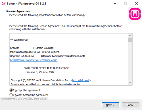 1) 打开下载的 wampserver3.2.3_x64.exe,开始安装 WampServer: