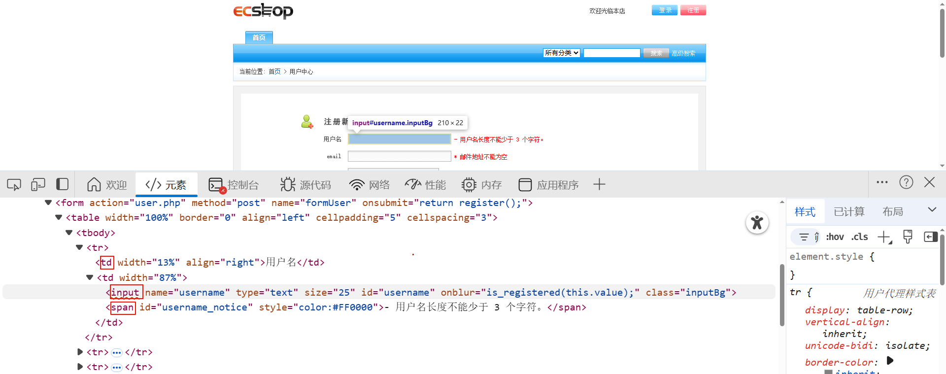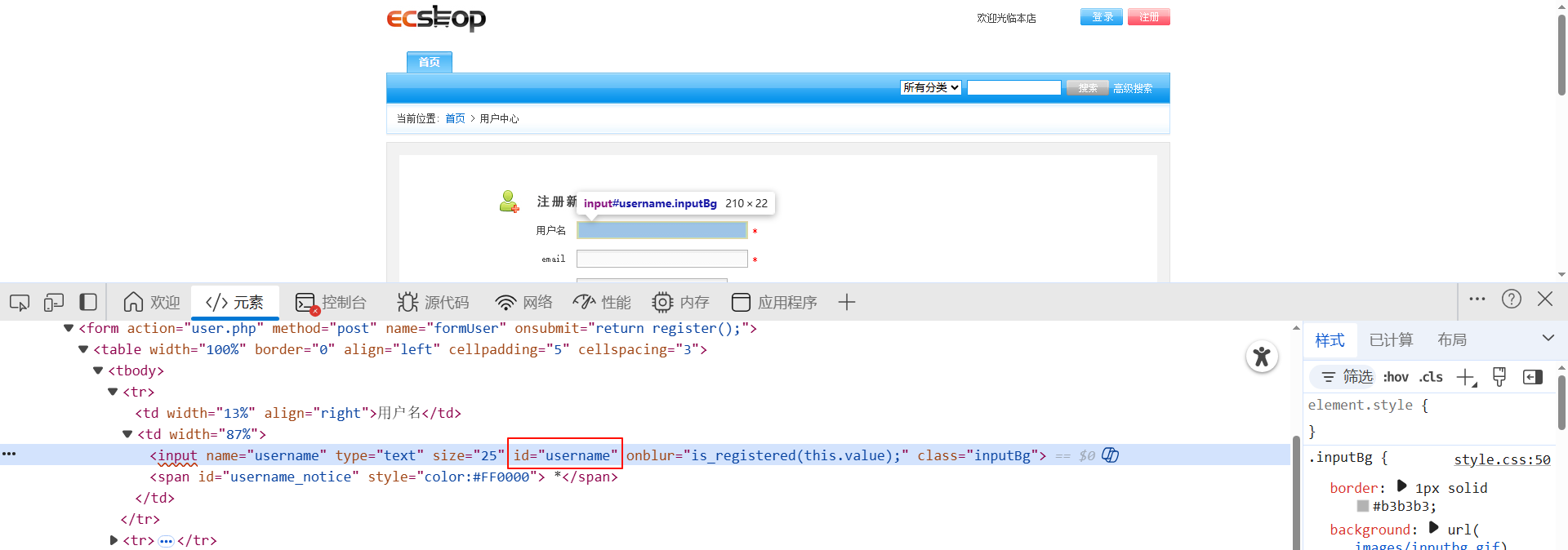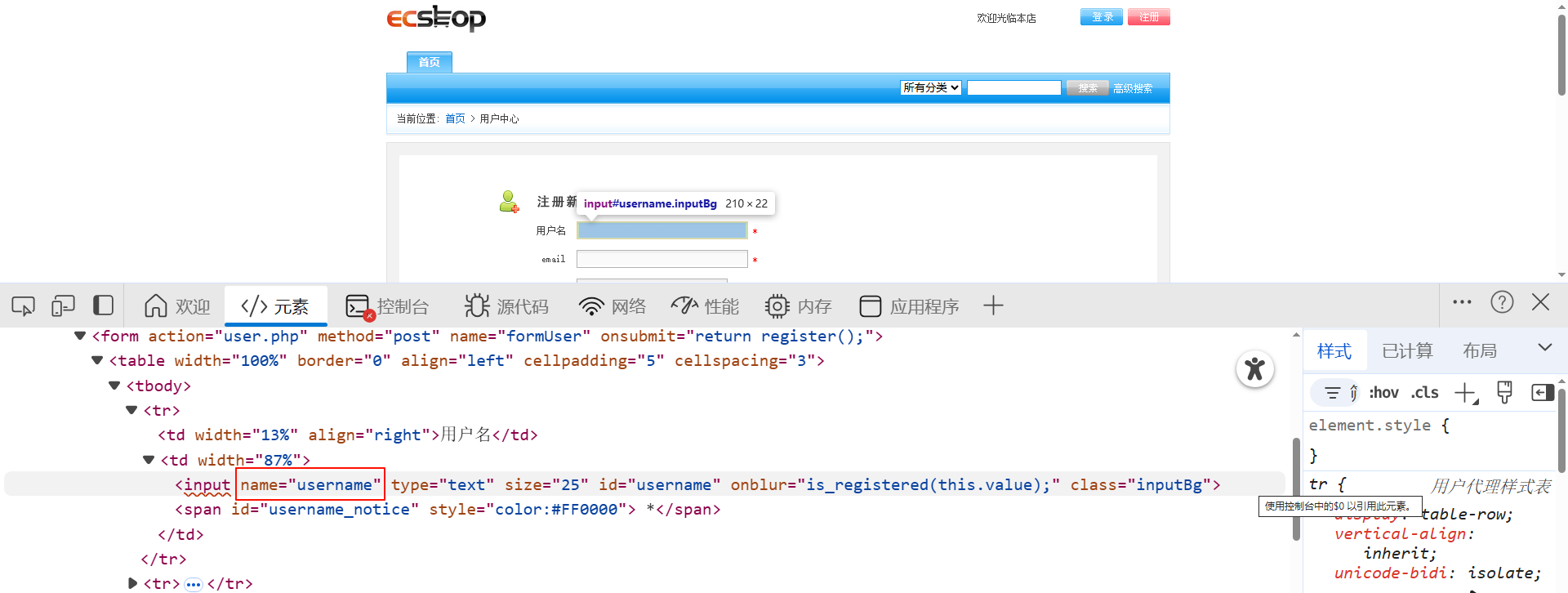 driver.get('http://localhost:8088/ecshop/user.php?act=register')# 第一个ID元素定位