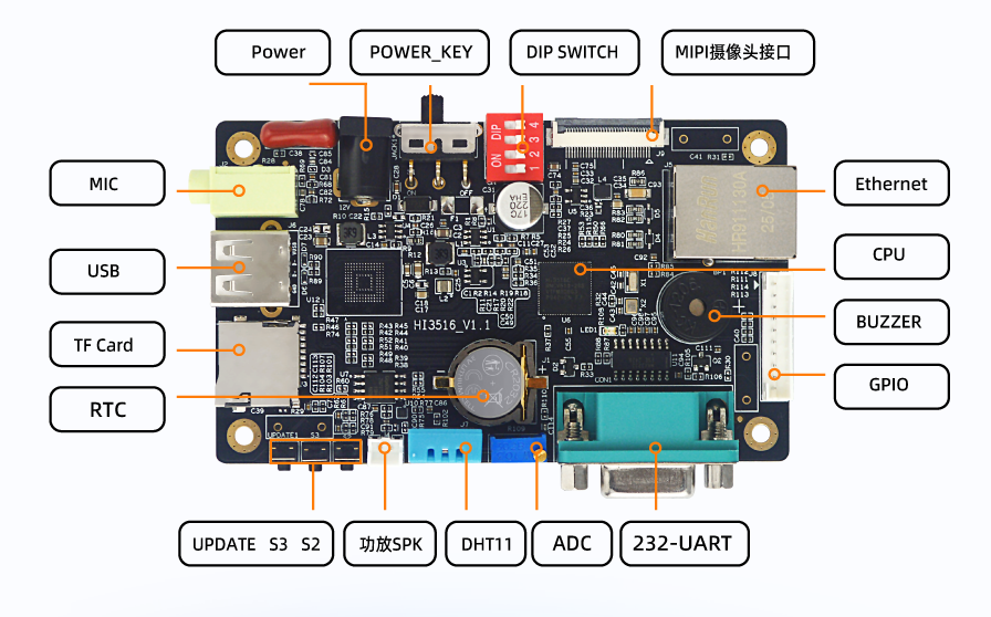 · 扩展: USB 2.0、232-UART、PWM、GPIO等