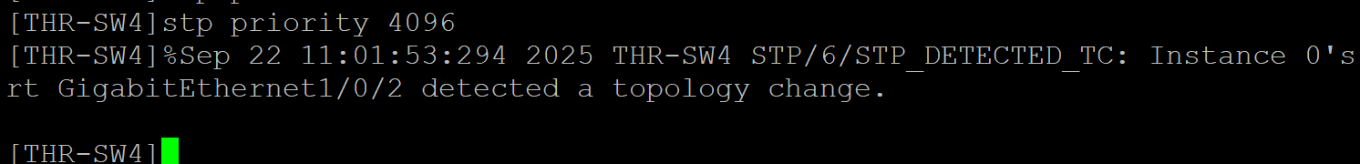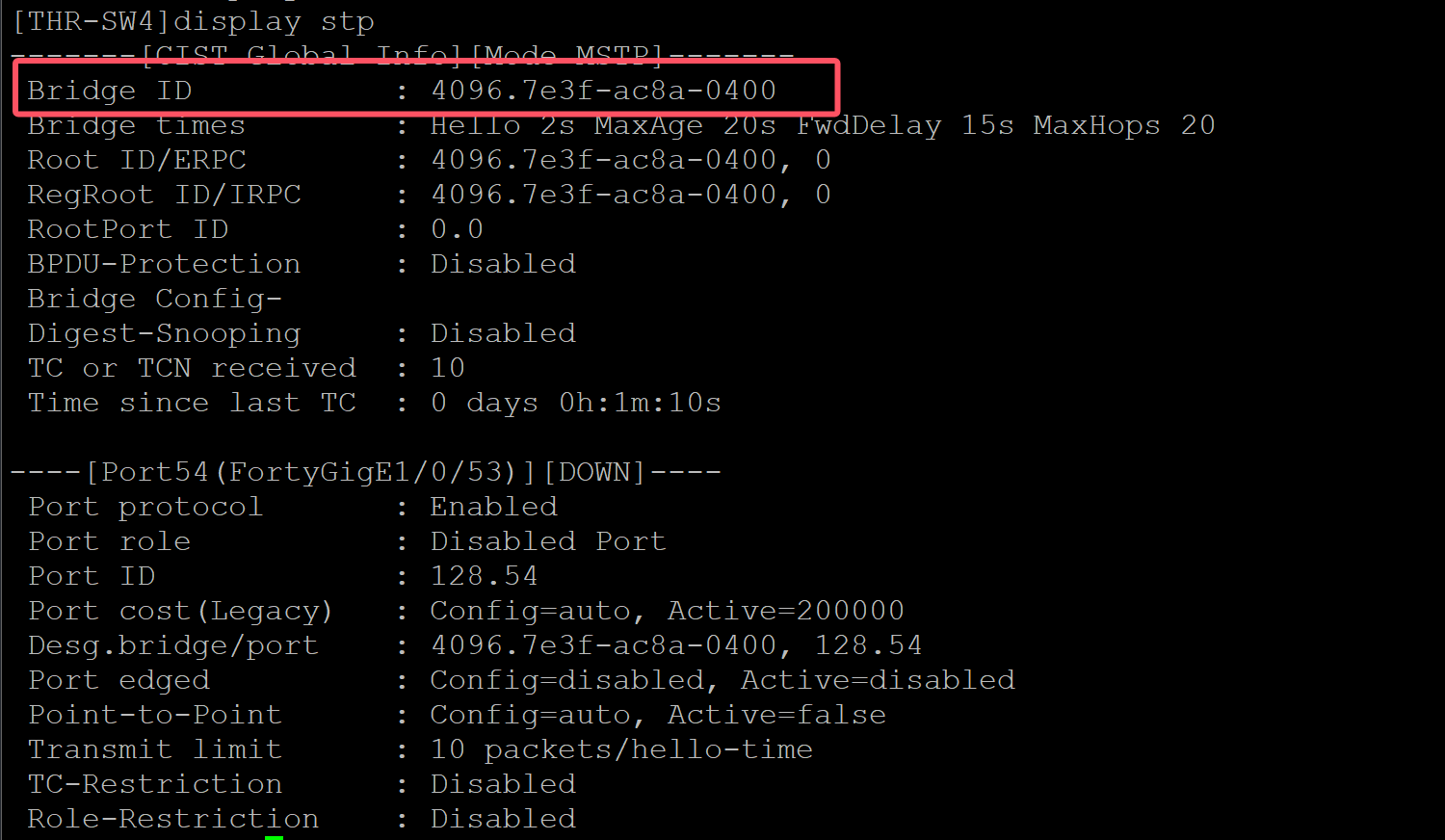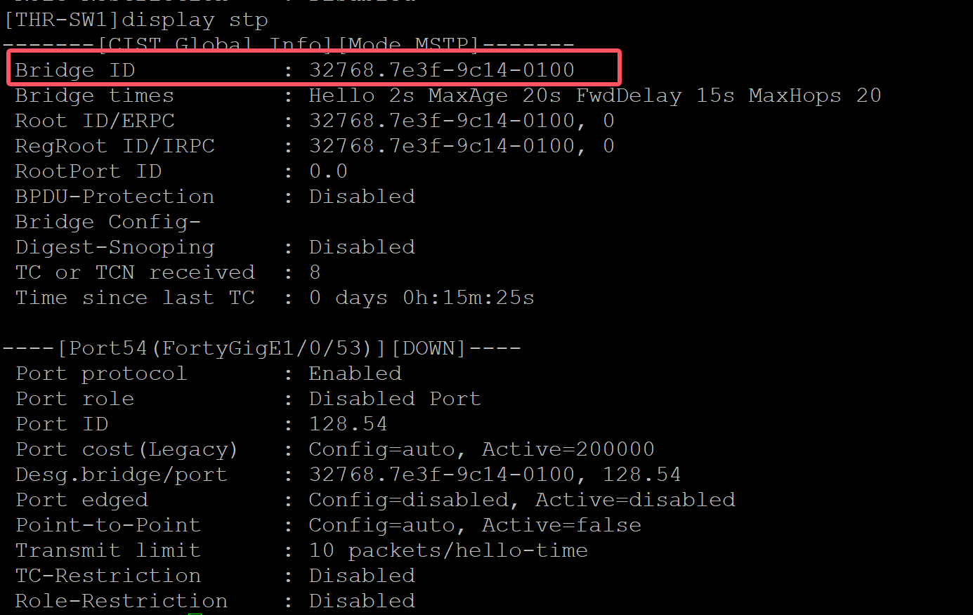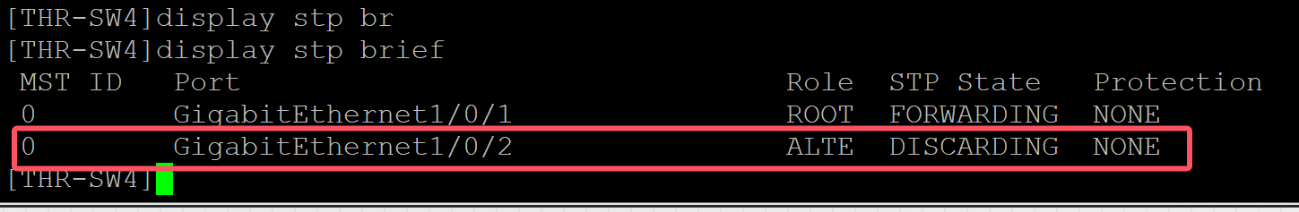 在SW4上查看stp运行状态,发现SW4成为新的网桥