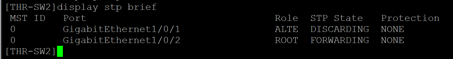 在SW2上查看接口状态,发现G1/0/1已经变成新的闭塞端口