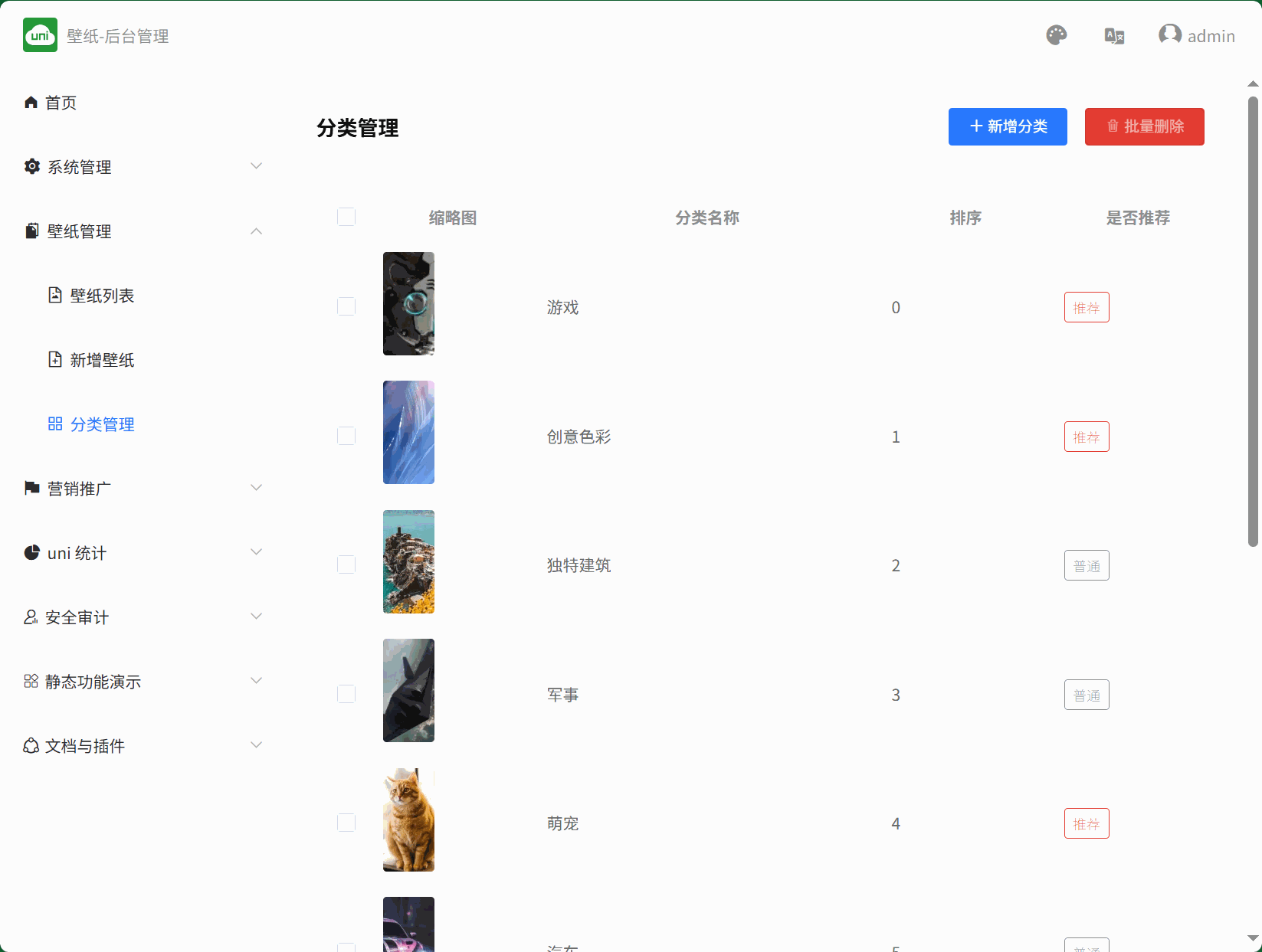 /*** 获取分类列表*/async list({ current = 1, size = 10 } = {}) {try {// 从第skip条数据开始let skip = (current - 1) * size;// 初始化数据库JQL实例const dbJQL = uniCloud.databaseForJQL({clientInfo: this.getClientInfo()});const res = await dbJQL.collection("wallpaper-classify").skip(skip).limit(size).field(`name,picurl,enable,select,sort,user_id,createTime`).orderBy("sort asc").get({ getCount: true }); // 返回数据和总数return res;} catch (err) {return {errCode: 500,errMsg: "数据库查询失败",data: [],count: 0};}},