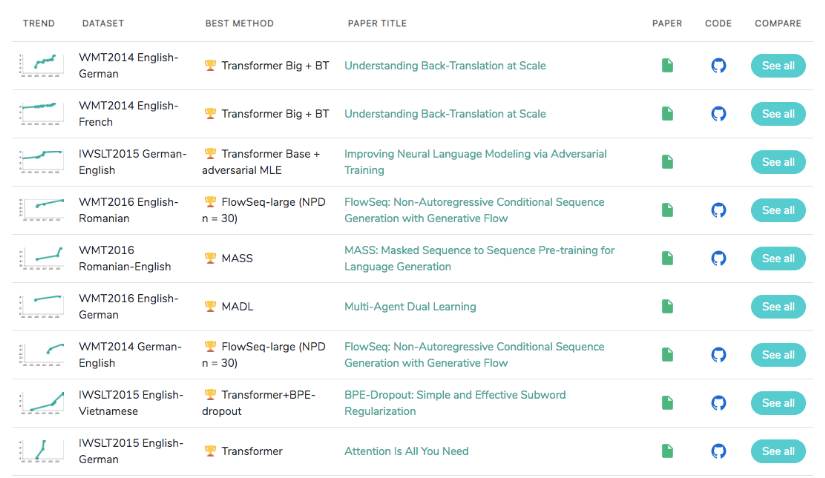 在著名的SOTA机器翻译榜单上, 几乎所有排名靠前的模型都使用Transformer,其基本上可以看作是工业界的风向标, 市场空间自然不必多说!