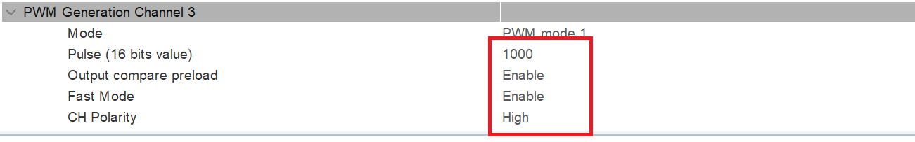 PWM的占空比:Pulse / (counter period+1) = 1000/(10000-1+1) = 1000/10000 = 10%
