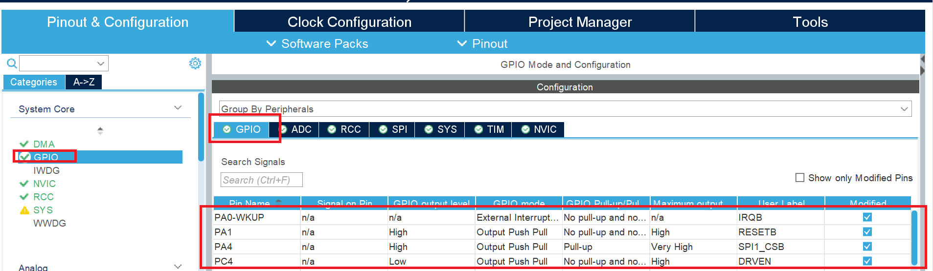 按下图配置IRQB/RESET/SPI1_CSB/DRVEN的GPIO