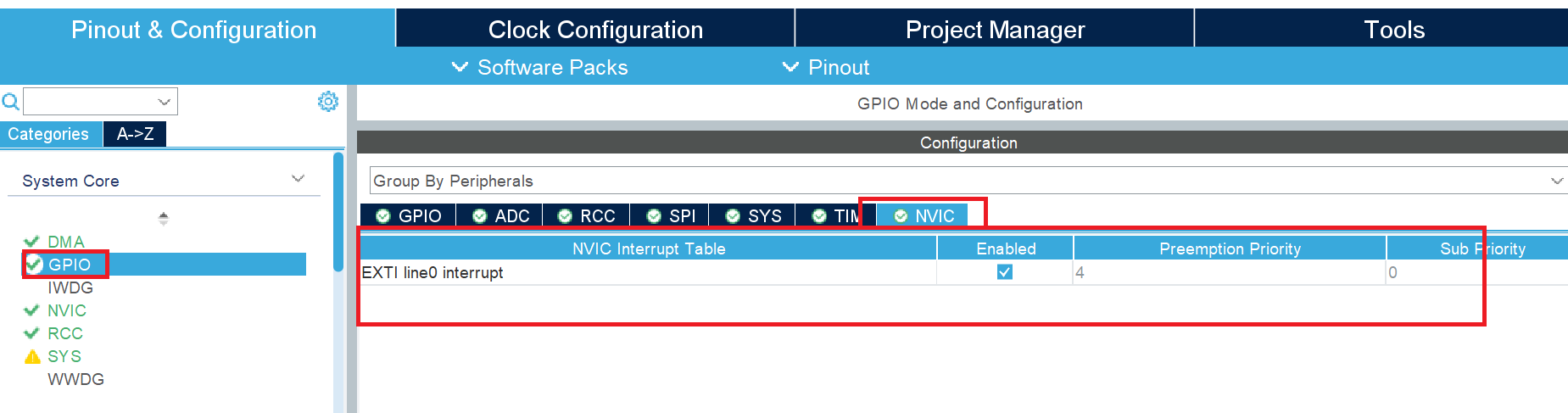打开NVIC中断,中断优先级设低点,如4(0表示最高优先级)