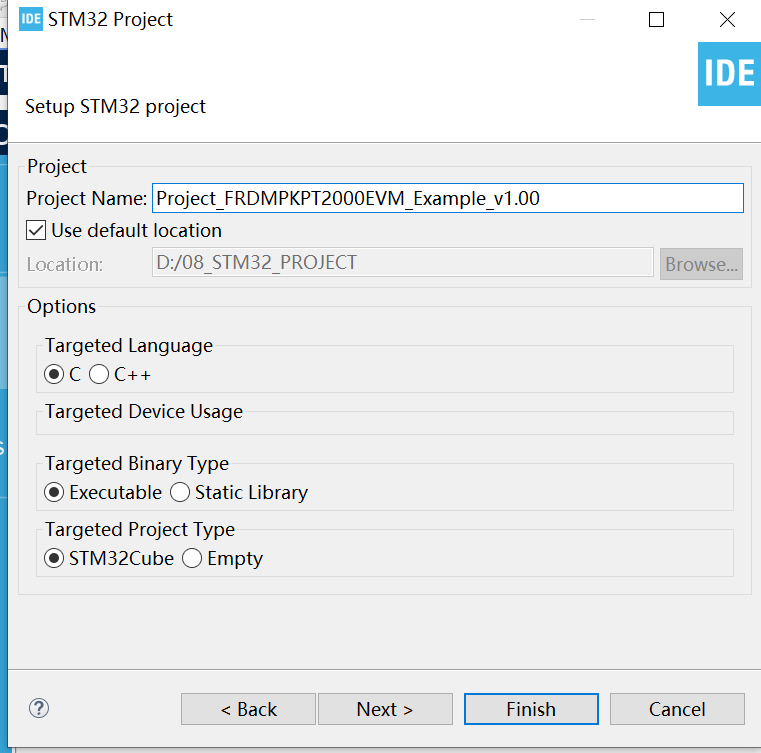 输入存储名称和存储地址,点击【Finish】即完成工程创建