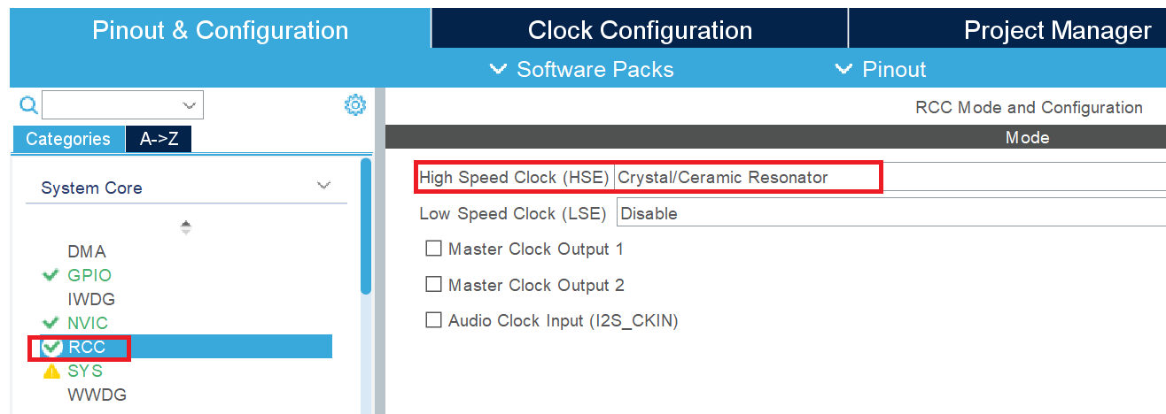 按下图配置,目标是产生1MHz,duty 50%的外部时钟信号。