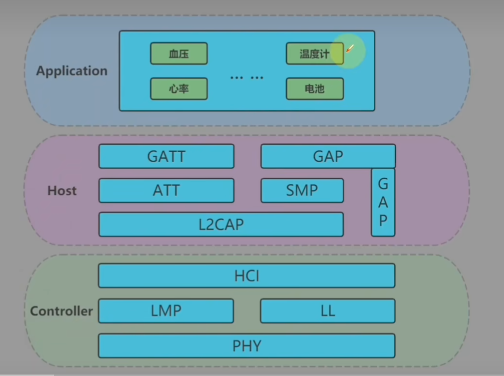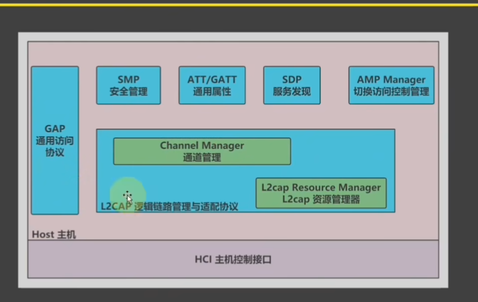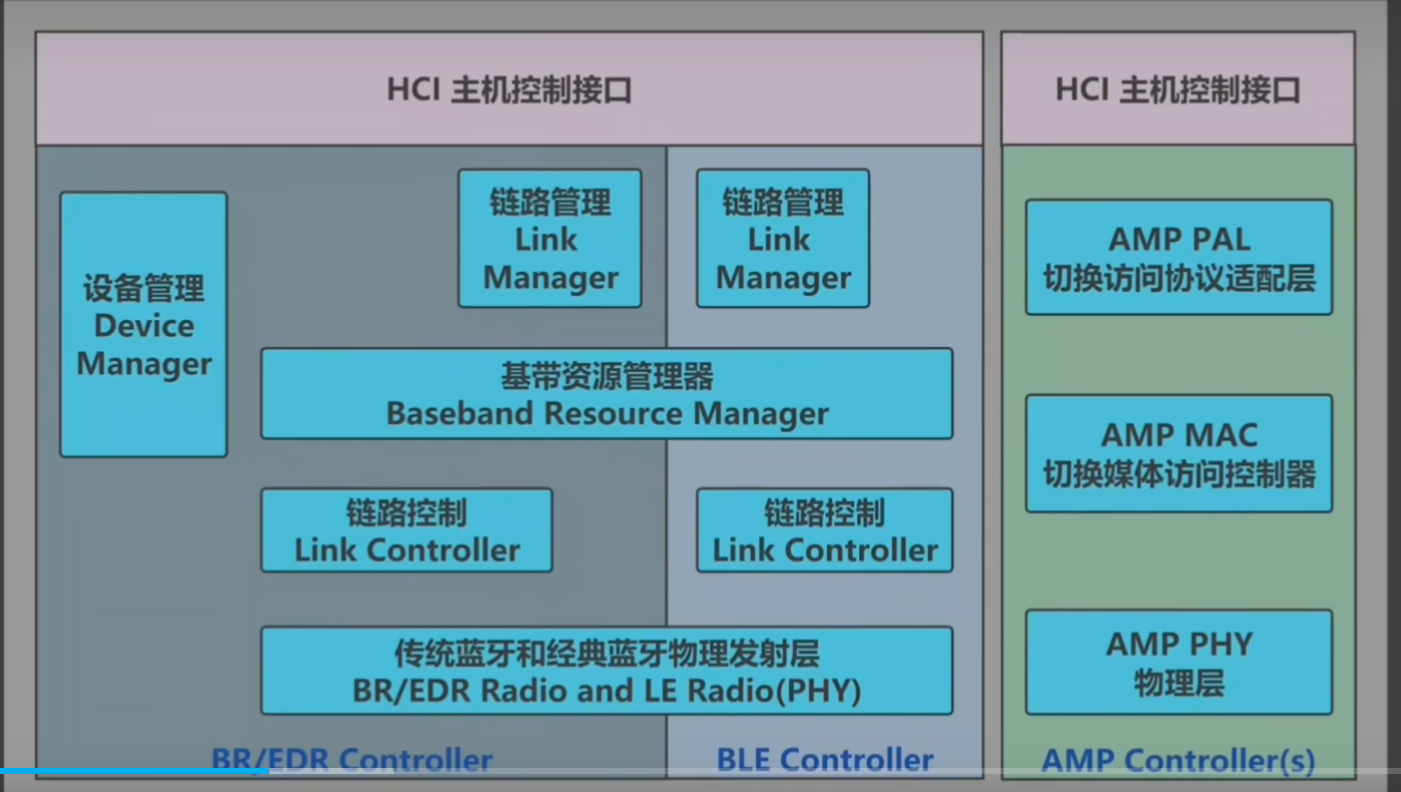 HCI主机接口控制: 控制器和主机之间的桥。它们之间通过HCI接口以HCI协议进行通信。支持硬件通讯协议有USB,UART,SDIO。