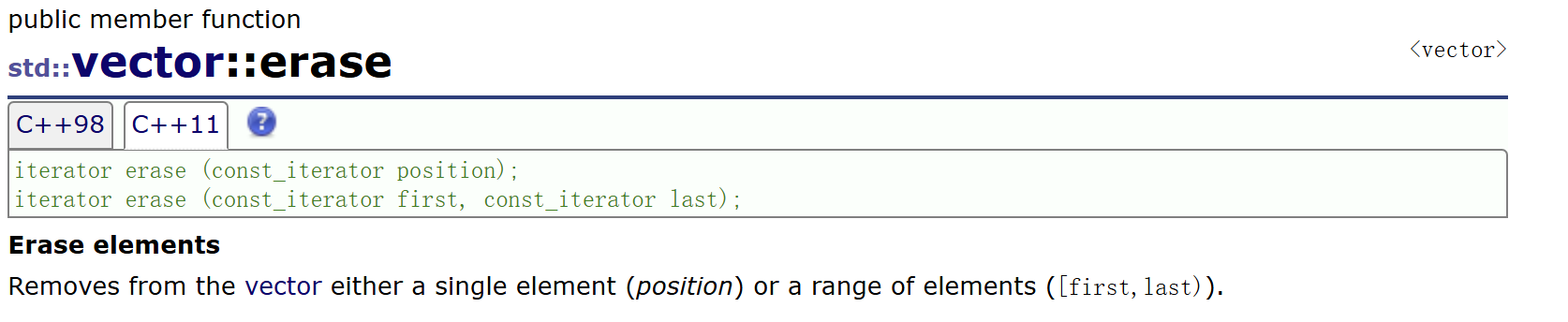 在 vector 中有个方法是 erase,该方法用来删除一个迭代器位置的元素或者是一个迭代器区间内的元素。erase 在删除完 pos 位置的元素后,pos 位置之后的元素会向前挪动,此时 pos 迭代器并不会失效。但是如果 pos 指向的是最后一个元素,也就是 end() - 1,此时删除完 pos 位置元素后,pos 成为了 end(),但是 end() 位置是不应该有元素的,此时 pos 位置迭代器就失效了。既然有失效的情况,也有不失效的情况,此时不同编译器的处理方法是不同的,在 vs 中,统一认为 erase 之后迭代器就失效了,需要重新对迭代器赋值;而在 g++ 中,则根据具体情况判断迭代器是否失效: