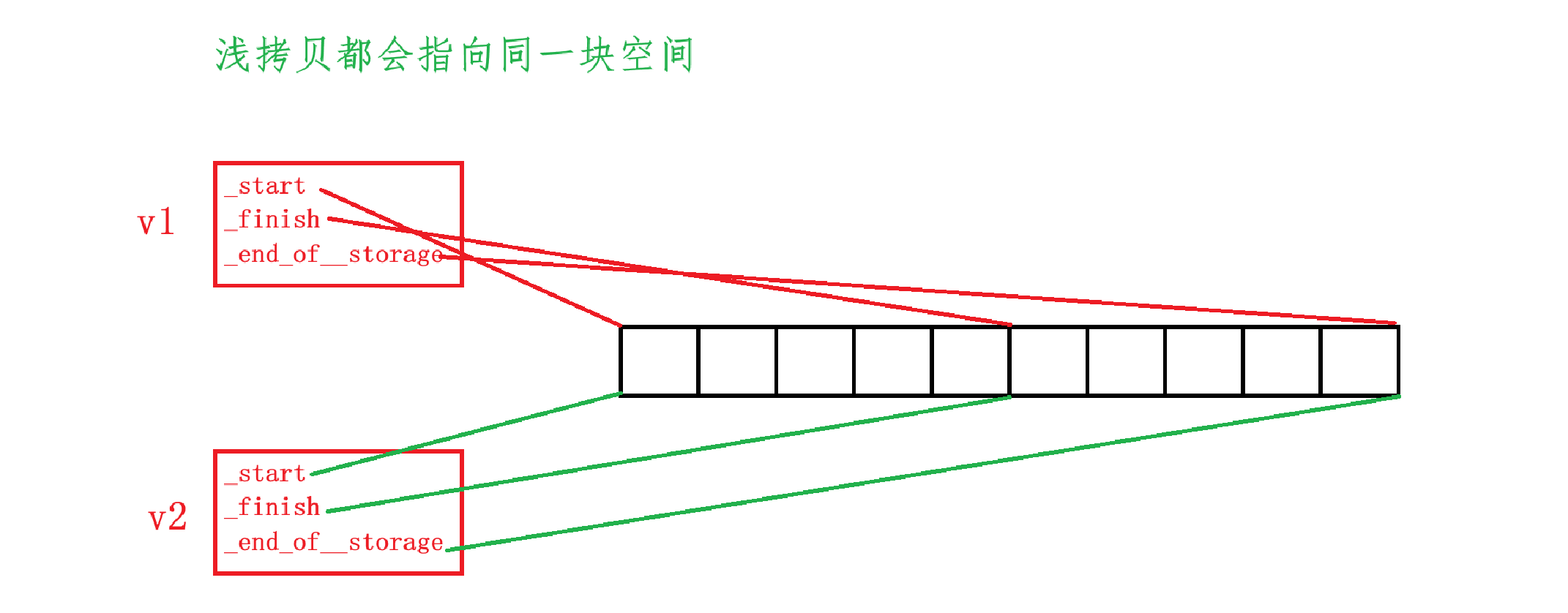 private://_start 指向空间起始位置T* _start;//_finish 指向有效元素的下一个位置T* _finish;//_end_of_storage 指向空间结束位置T* _end_of_storage;