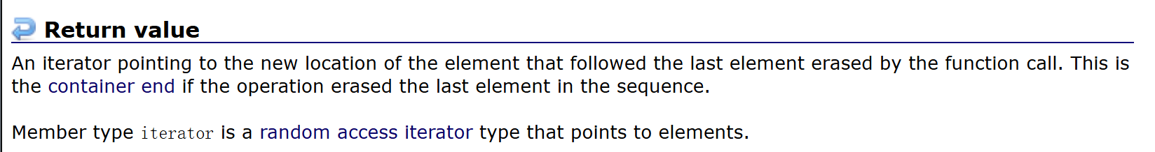 所以为了避免 erase 之后迭代器会失效,erase 函数其实是有返回值的,其会返回删除后下一个位置的迭代器:
