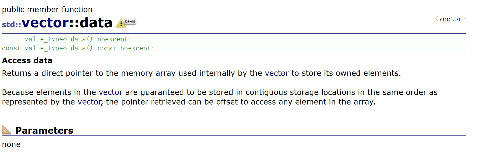 其中 operator[],at,front,back 与 string 中的接口功能一模一样,这里就不再赘述。我们来讲解一下 data 接口。