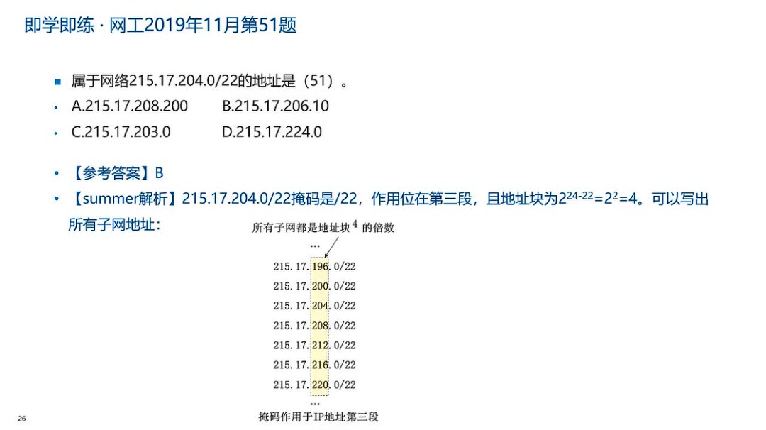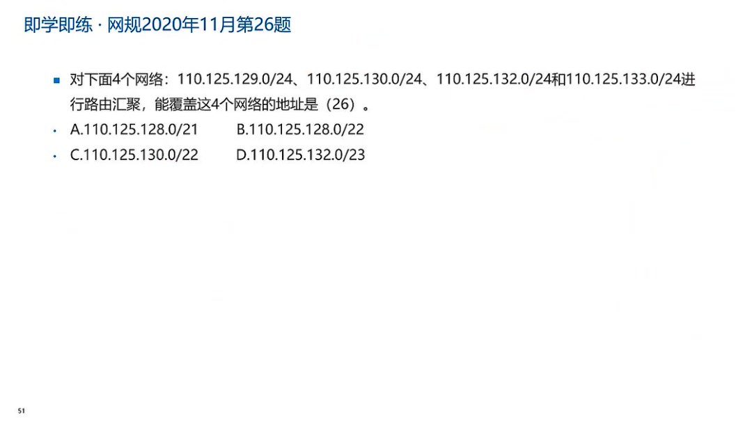 - 陷阱选项:/22只能覆盖连续4个/24,但132-133与129-130不连续