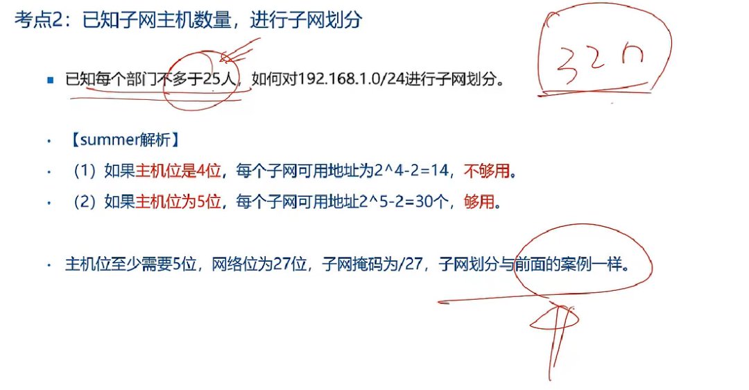 VLSM划分 | 多级子网划分(先满足大需求部门) | 案例:/24→2个/25→4个/26等 | ★★★★ |