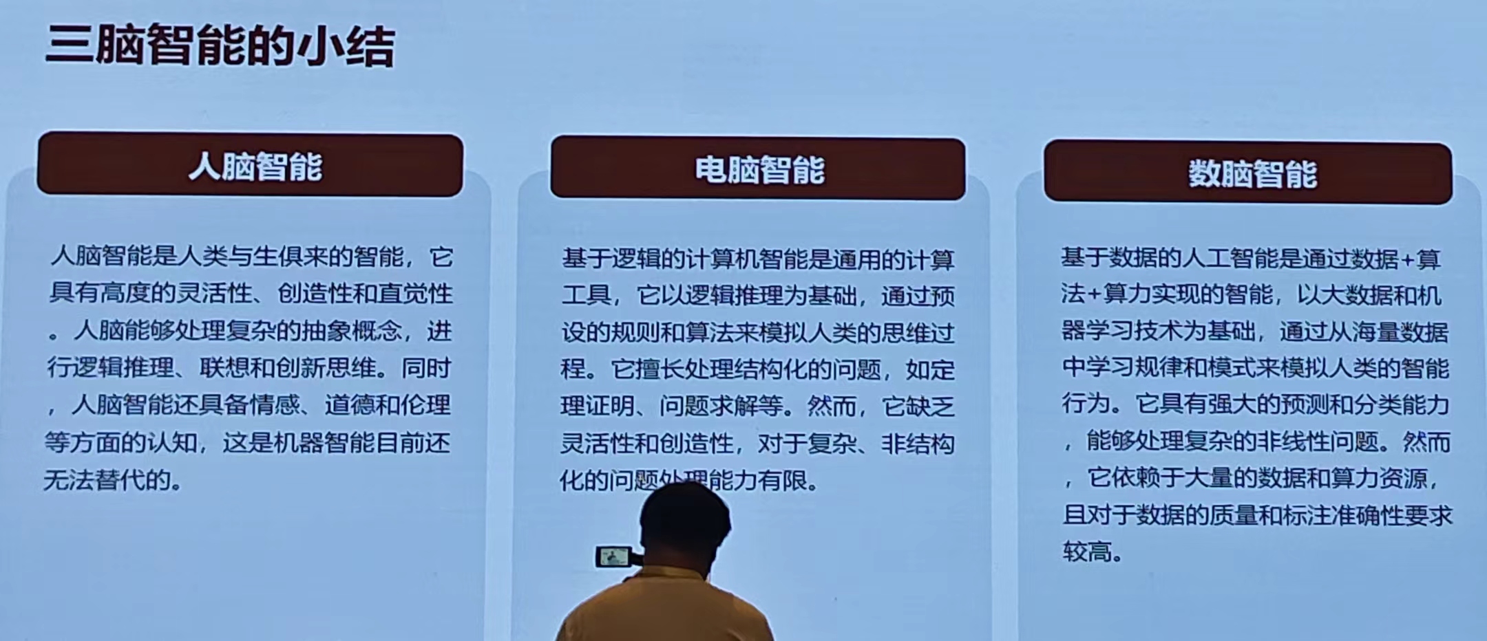 对比了三种智能的异同点【我们现在的研究阶段处于第二阶段;数脑计算】