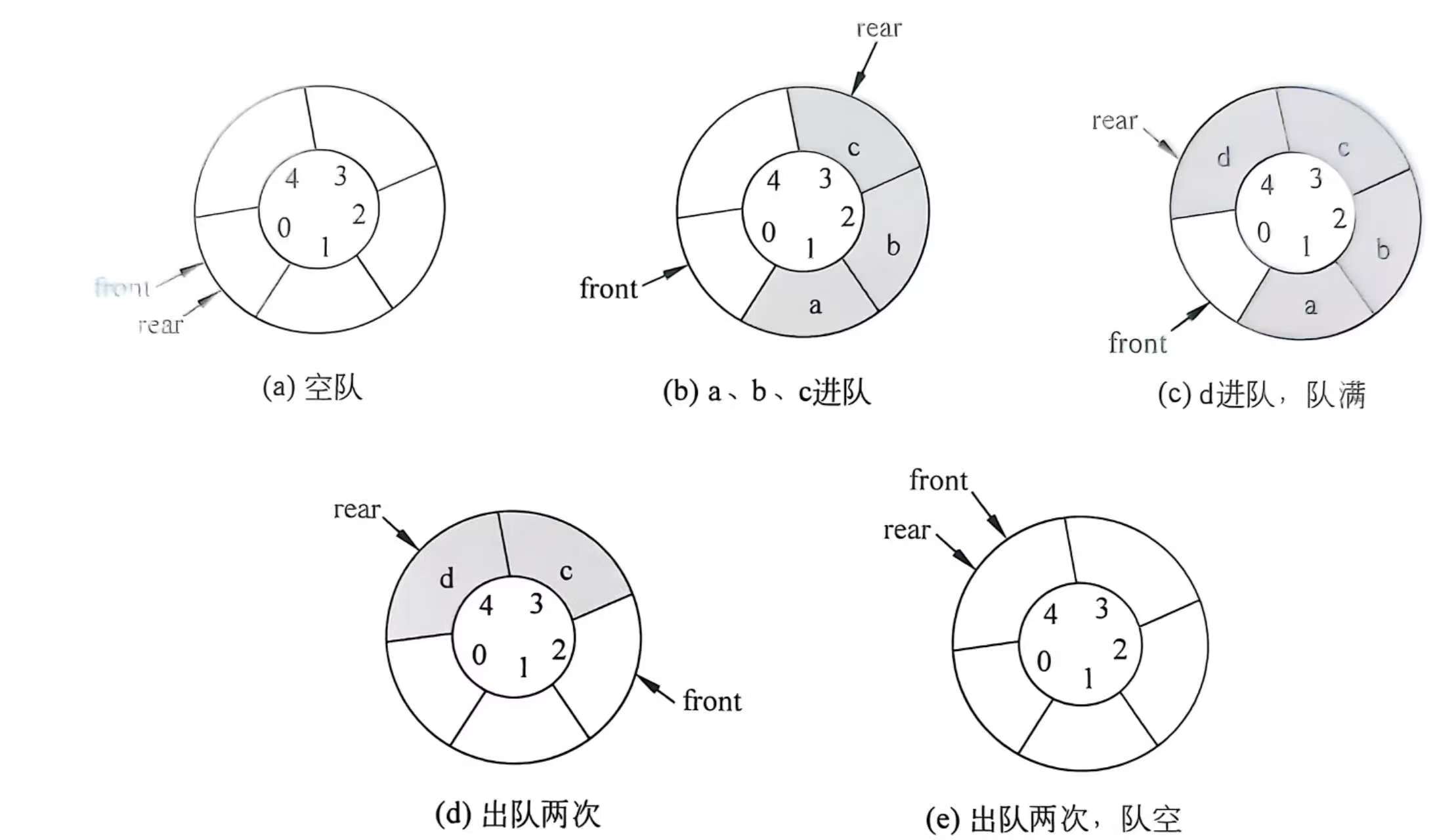 下图说明了环形队列操作的几种状态,设MaxSize为5。