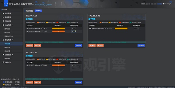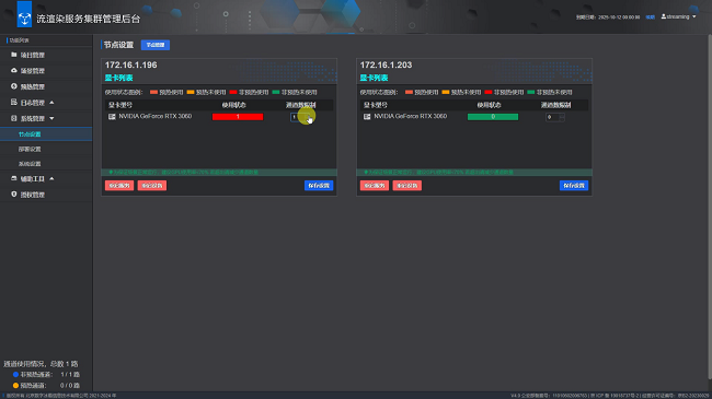 支持对流渲染服务器上的显卡硬件资源,以渲染通道的形式,进行统一管理。支持多显卡识别,多显卡管理,支持设置通道分辨率,并设置每块显卡的指定规格通道数量,支持实时查看显卡和通道的运行状态,支持流渲染硬件重启动。实现流渲染硬件资源精细化管理。