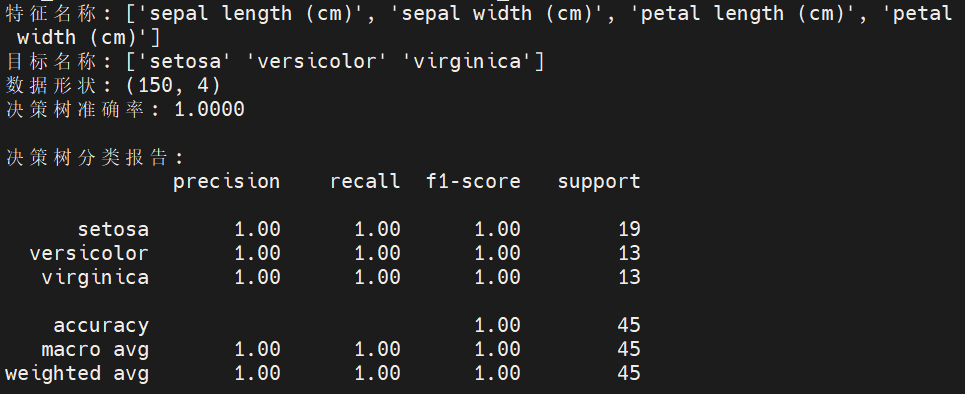 - 成功运行:代码无报错,能成功输出决策树模型的准确率和分类报告。