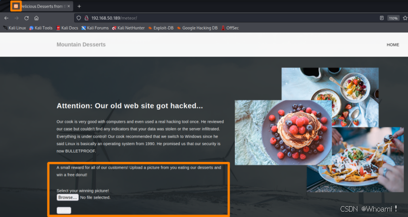 示例:Mountain Desserts应用程序:访问http://192.168.50.189/meteor/