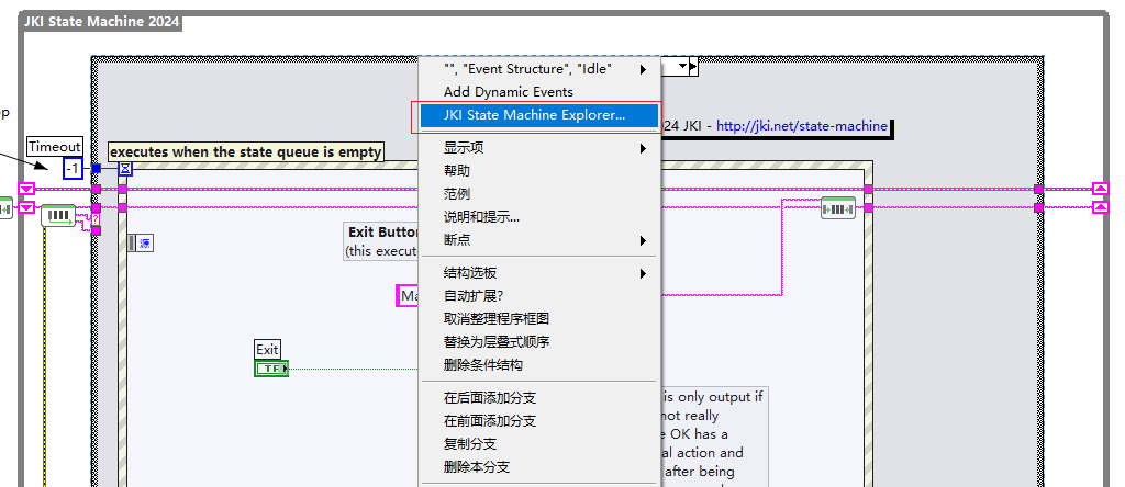 3.定义数据:右键状态机案例结构,选择JKI State Machine Explorer