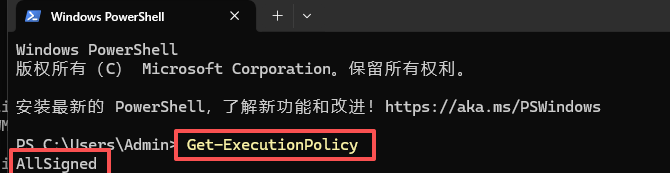 -->使用管理员身份 进行获取当前执行的策略【Get-ExecutionPolicy】--> 获得当前【AllSigned】