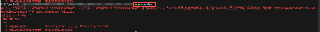 “npm : 无法加载文件 C:\Program Files\nodejs\npm.ps1,因为在此系统上禁止运行脚本。”