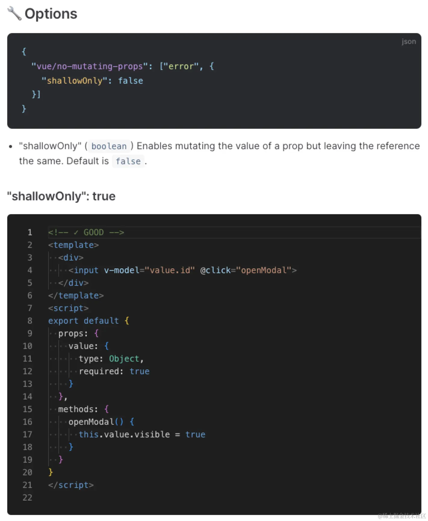 规则中,也额外新增支持配置允许复杂类型的props突变。这也都是社区开发者们的诉求。