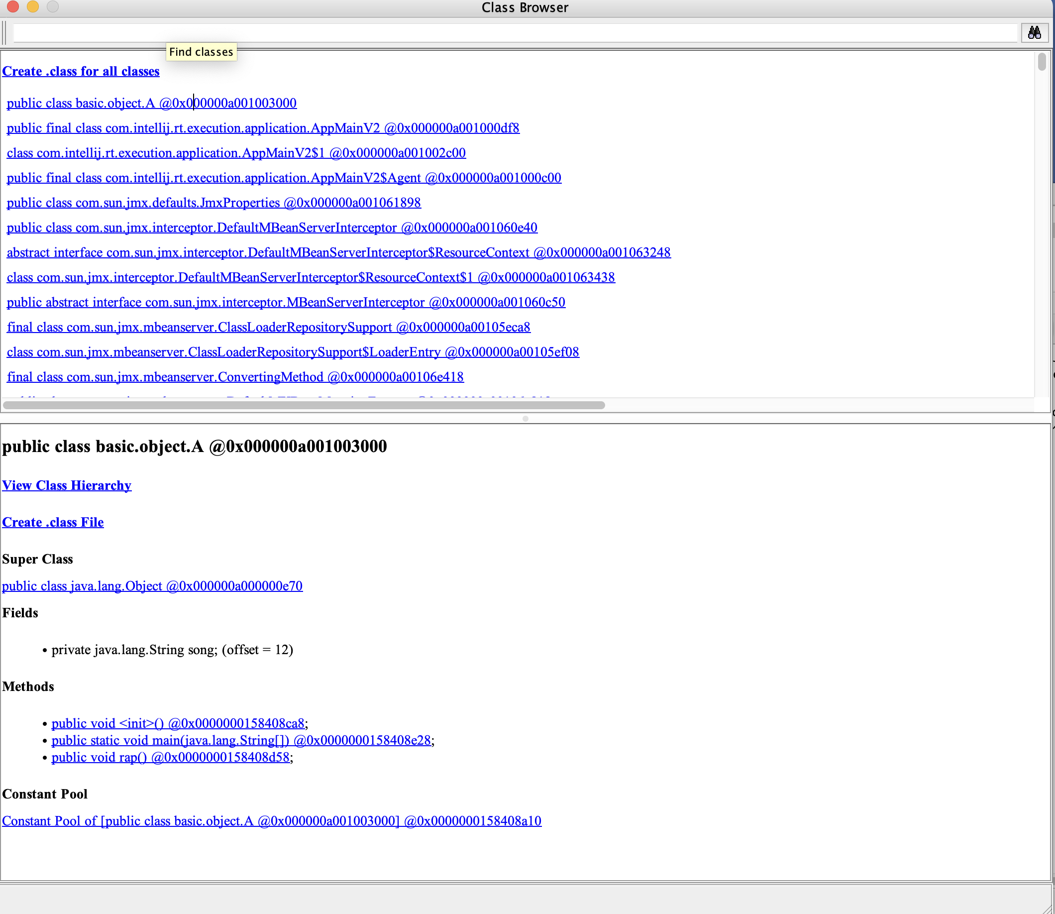 public class basic.object.A @0x000000c801003000public class java.lang.Object @0x000000c800000e70