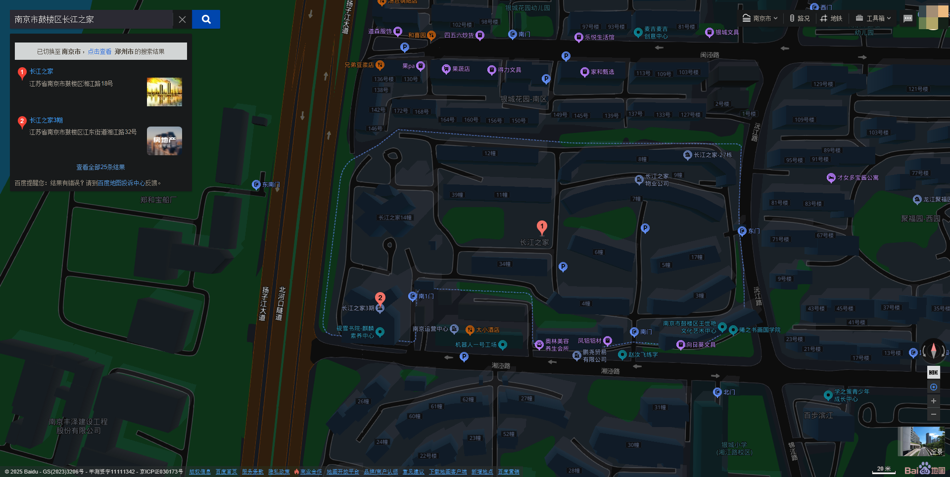 使用百度地图搜索一个地址(以小区为例),可以看到这个地址的边界信息,如图: