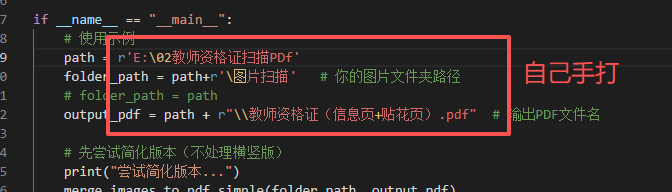 import iodef merge_images_to_pdf(folder_path, output_pdf_name="output.pdf"):"""将文件夹中的所有图片合并为PDF,自动识别横竖版Args:folder_path (str): 图片文件夹路径output_pdf_name (str): 输出PDF文件名"""# 支持的图片格式supported_formats = ('.png', '.jpg', '.jpeg', '.bmp', '.tiff', '.tif', '.webp')# 获取所有图片文件image_files = []for file in Path(folder_path).iterdir():if file.suffix.lower() in supported_f