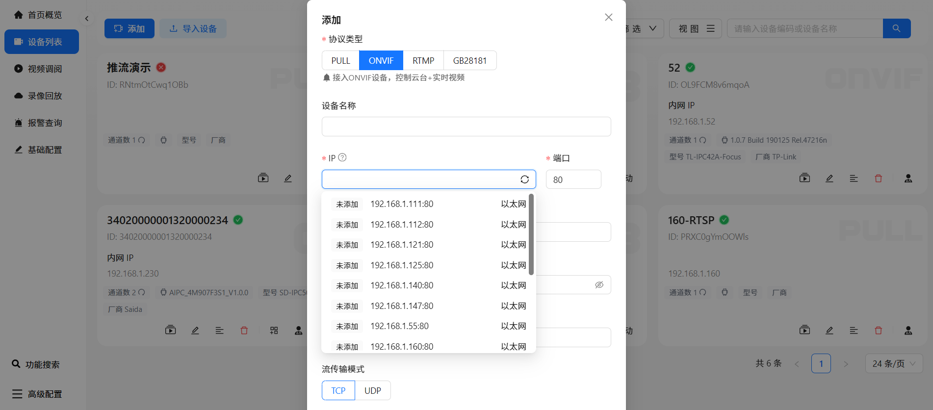 EasyNVR 添加 ONVIF 设备。同网段设备可以探测接入哦!填写设备的 ONVIF 账号与密码,即可完成接入。