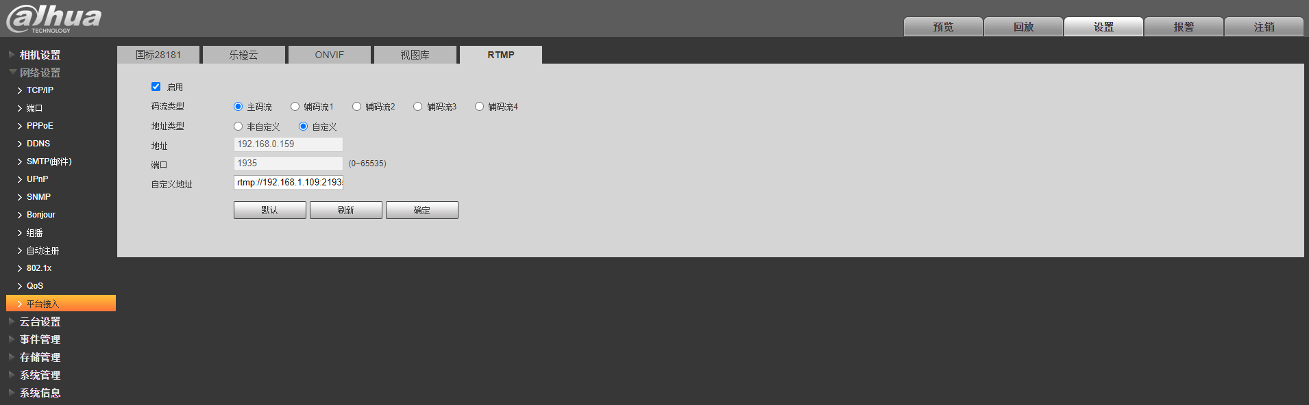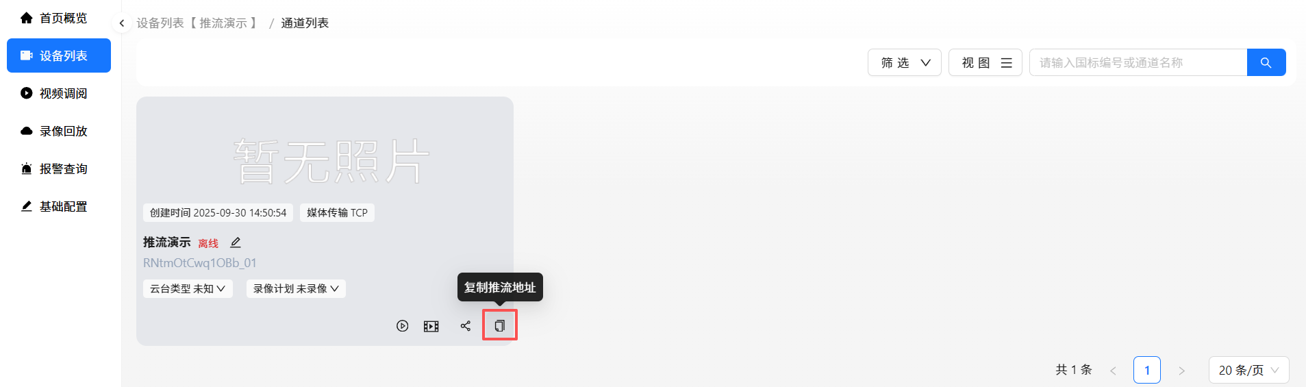 192.168.1.109:EasyNVR 平台地址,支持多线路,不同网络设备可选择对应地址推流;