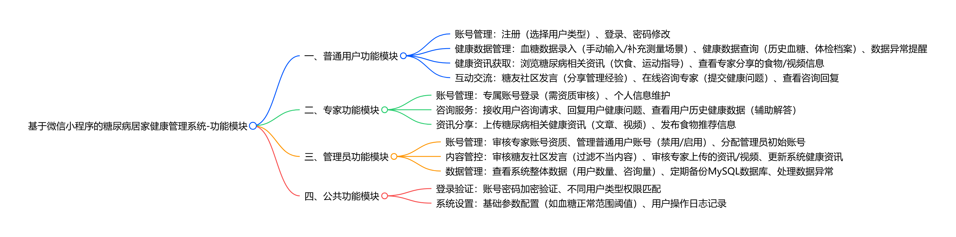 核心服务于 “普通用户 - 专家 - 管理员” 三方,功能围绕糖尿病居家健康管理展开: