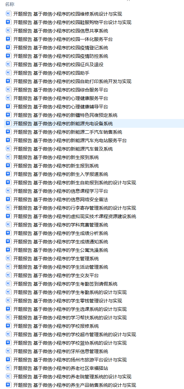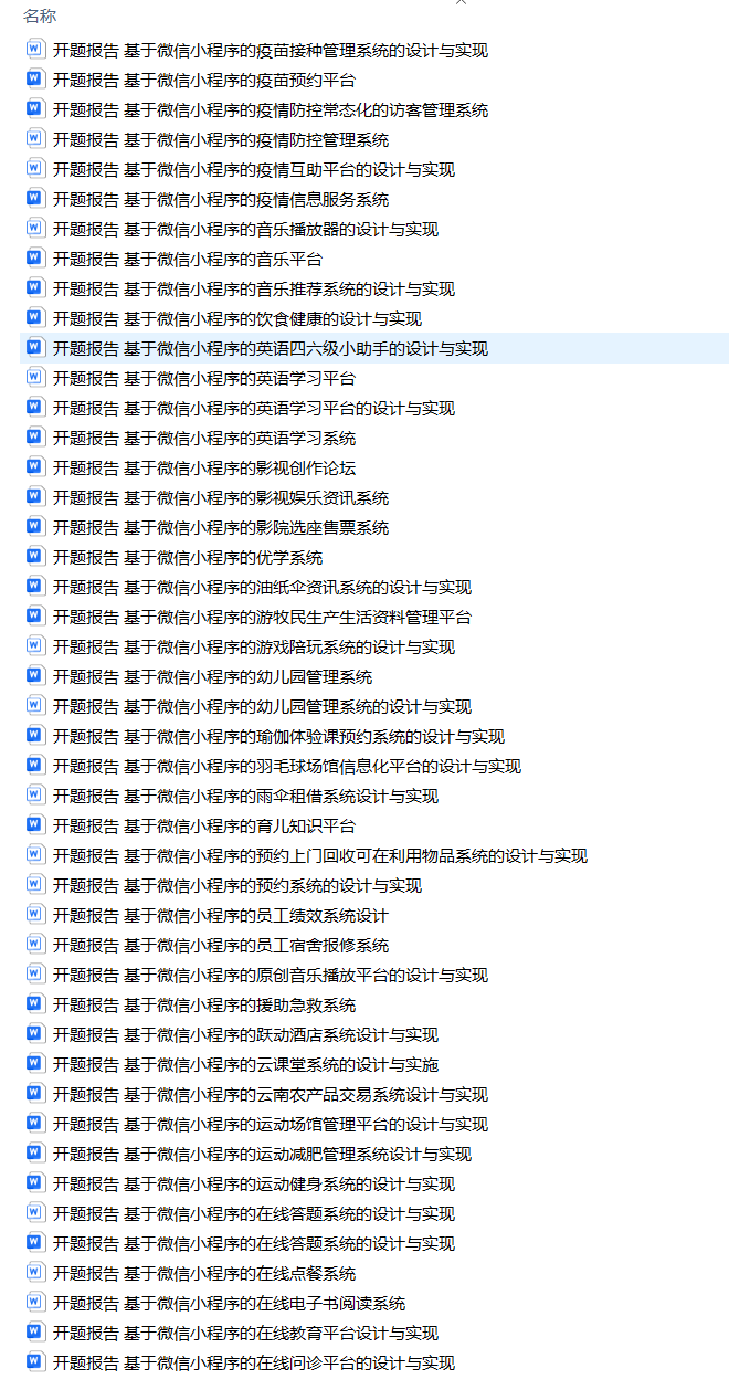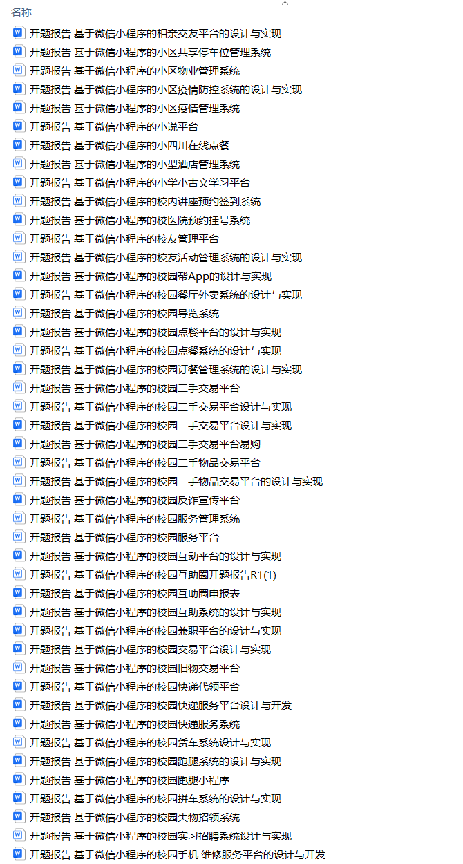 以上是H同学的毕业设计答辩过程,如果你现在还没有参加答辩,还是开题阶段,已经选好了题目不知道怎么写开题报告,可以下面找找有没有自己符合自己题目的开题报告内容,列表中的开题报告都是往届真实的开题报告,可发送使用或参考。