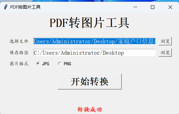 该工具支持批量转换pdf为图片,pdf有多页会转换成多个图片,支持转换为jpg和png图片, 保存路径可选择