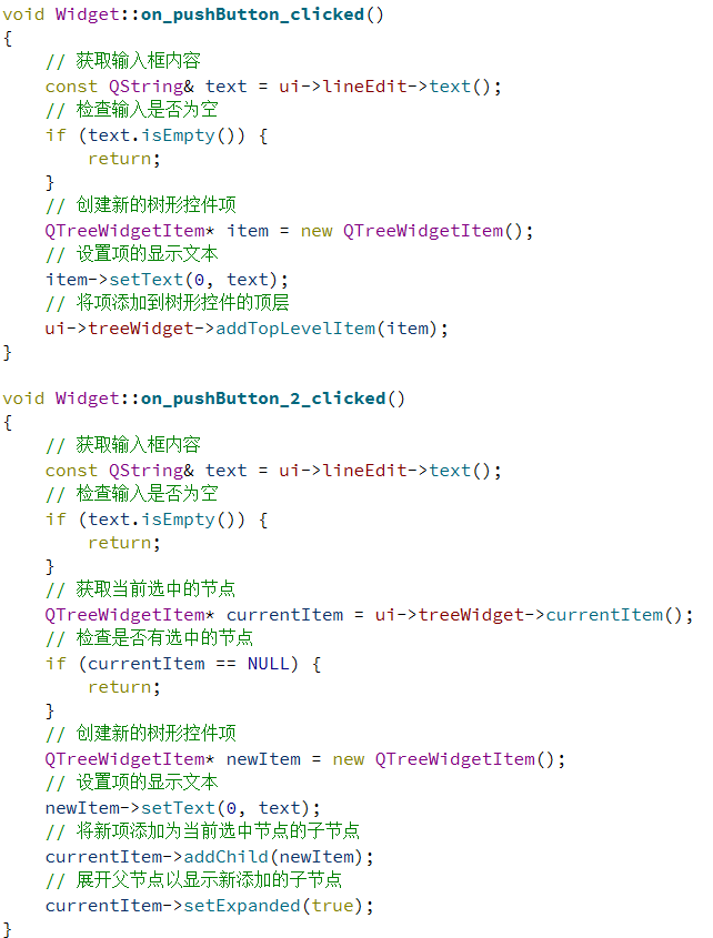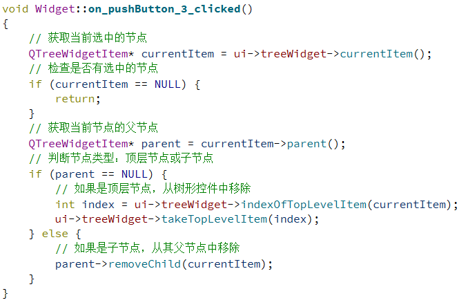 QTreeWidgetItem *item = treeWidget->currentItem(); if (item) {item->setExpanded(true); // 展开当前选中的节点 }