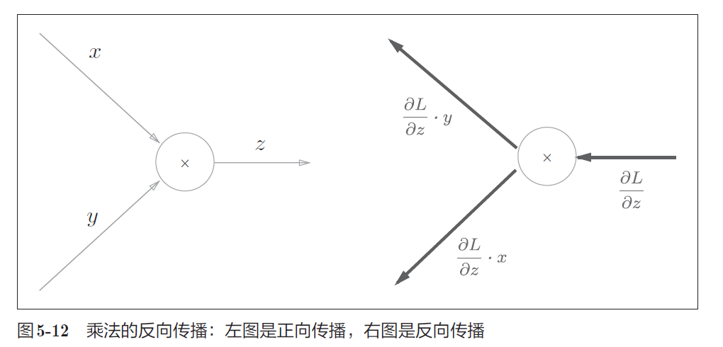 乘法的反向传播需要正向传播时的输入信号值,乘法的反向传播会乘以输入信号的翻转值
