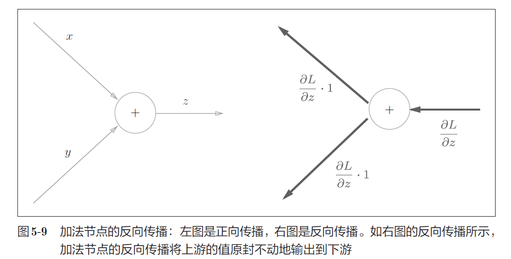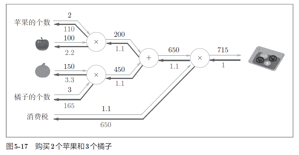 计算图的正向传播进行一般的计算。通过计算图的反向传播,可以计算各个节点的导数。