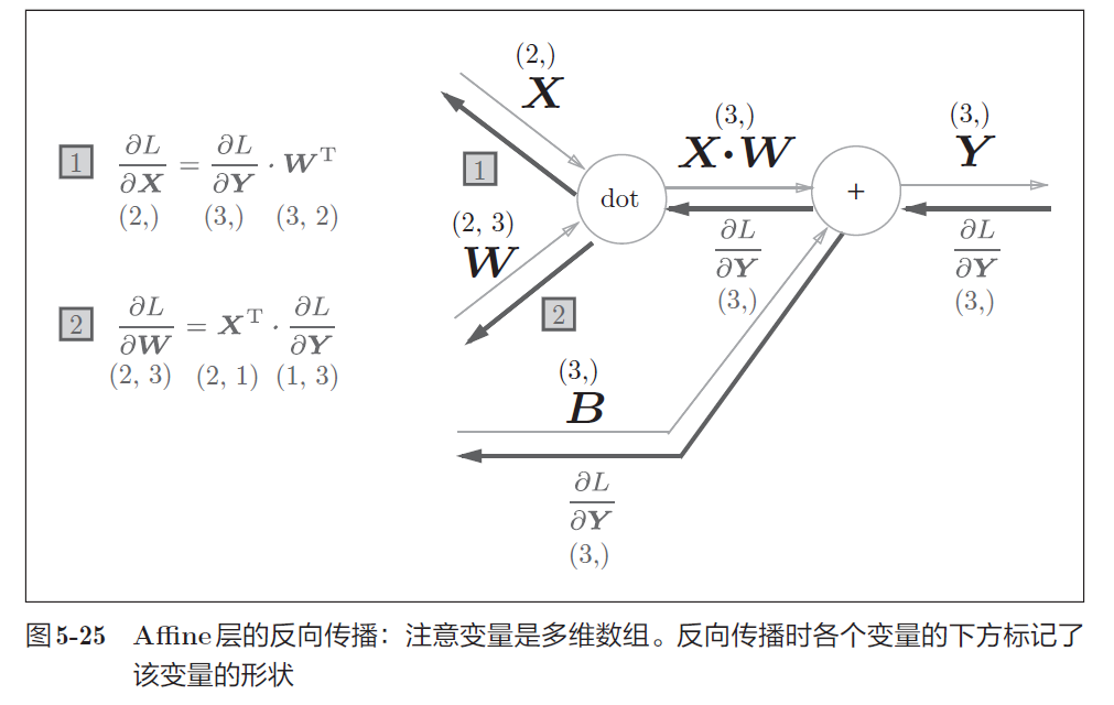 神经网络的正向传播中进行的矩阵的乘积运算在几何学领域被称为“仿射变换”。将进行仿射变换的处理实现为“Affine层”。