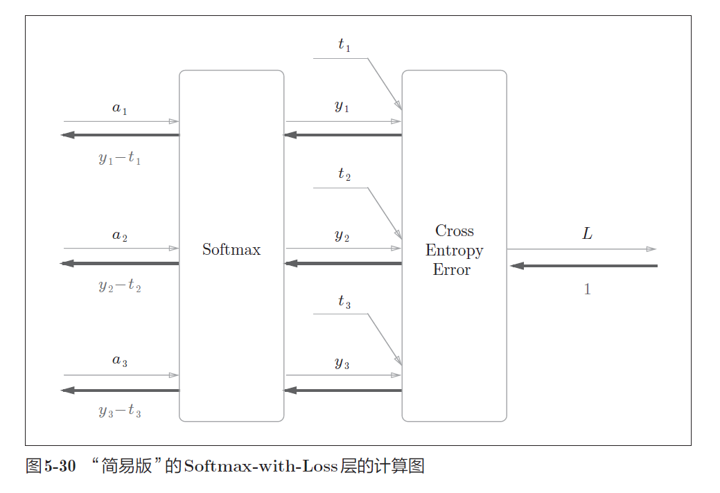 y-t刚好为预测值与标签值的差,这不是偶然,交叉熵函数是为了得到这样的结果而设计的