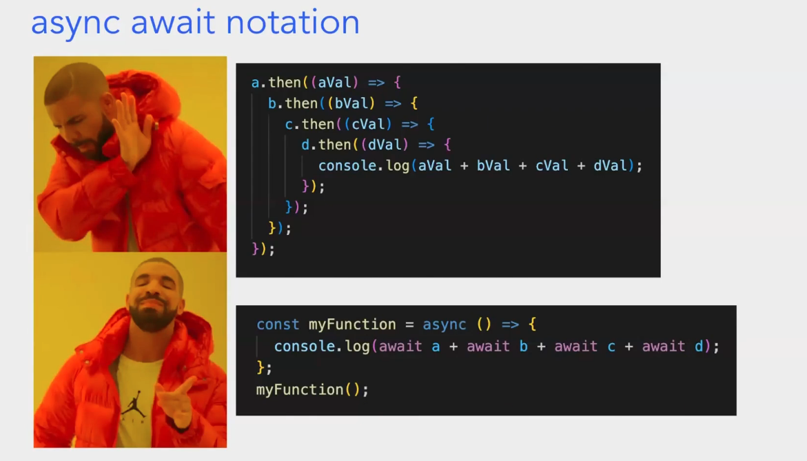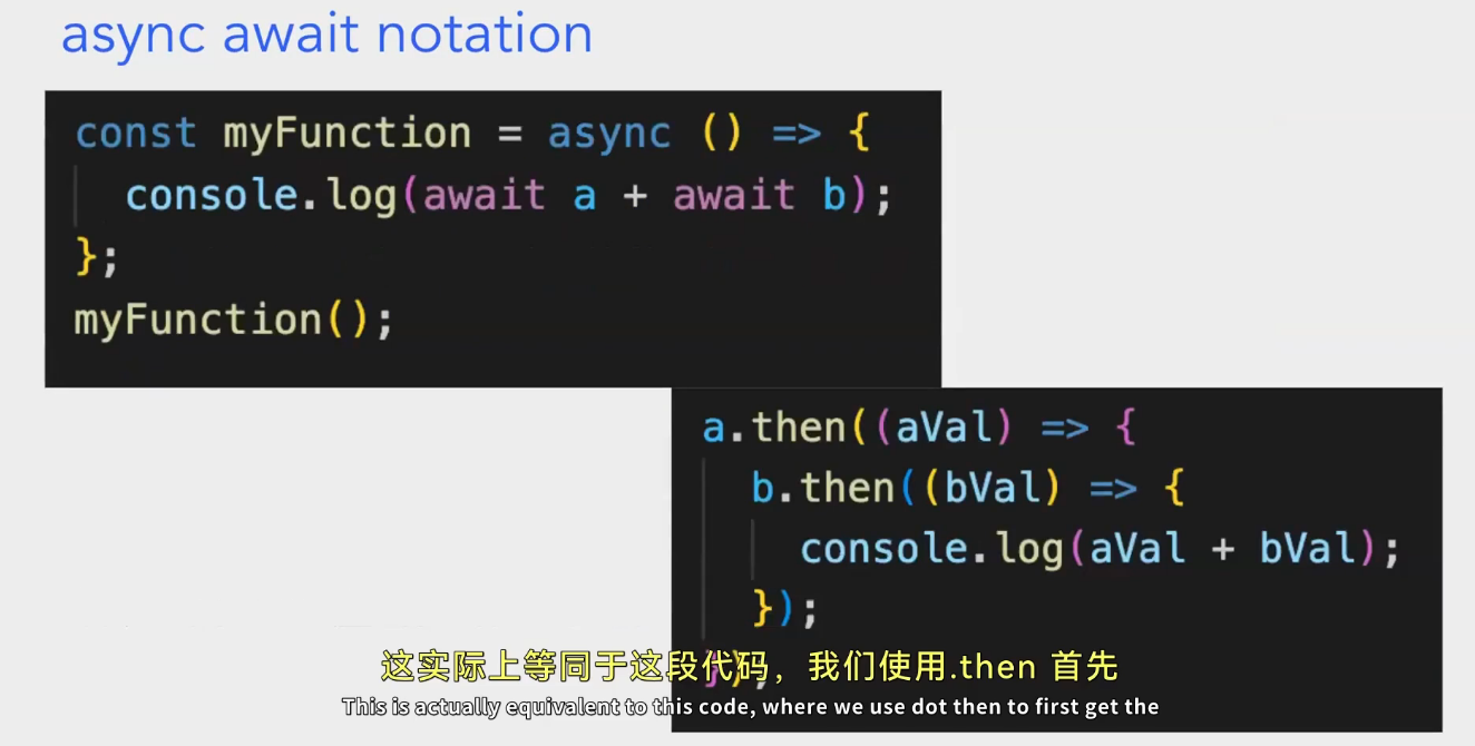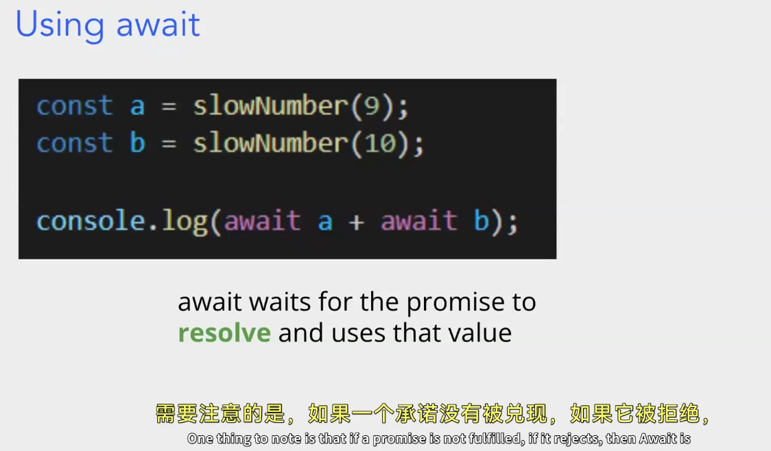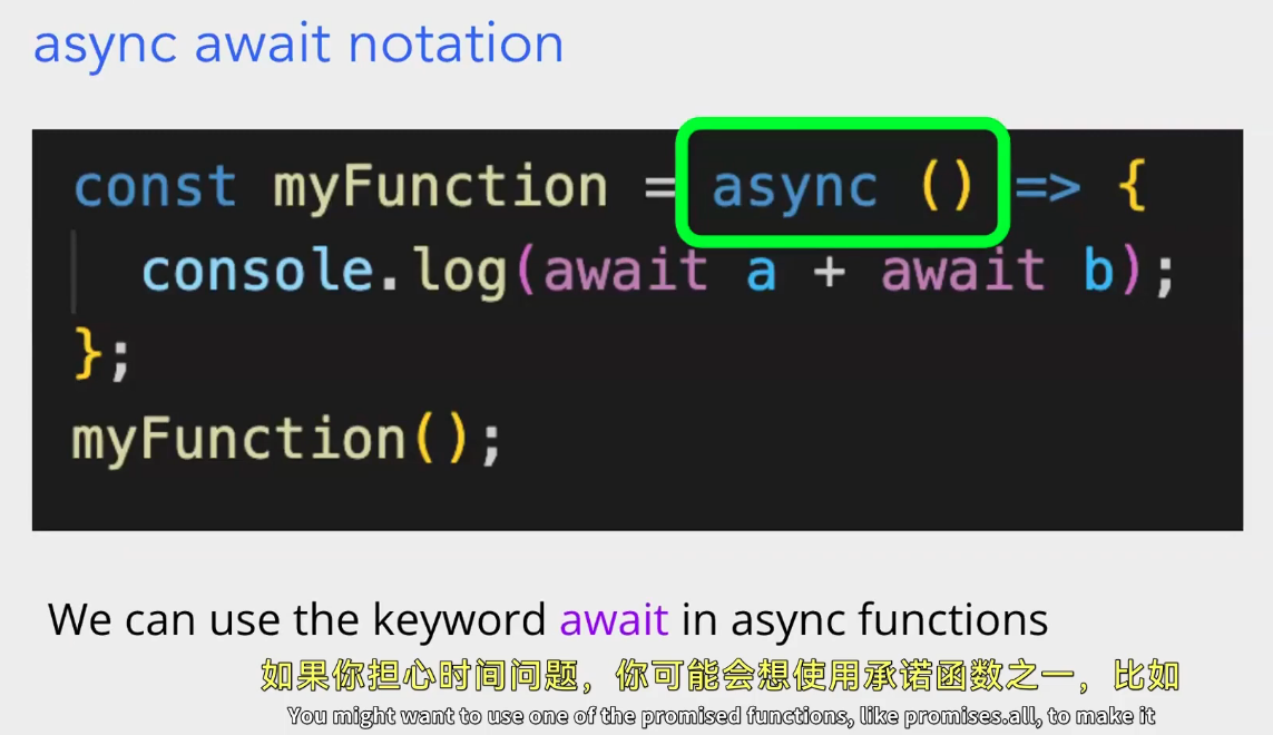 - “We can use the keyword await in async functions”:意思是我们可以在异步函数(用