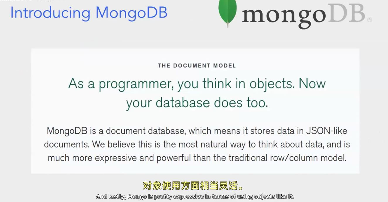 相比传统的行 / 列数据模型,MongoDB 在数据表达和功能上更加灵活、强大,在对象使用方面相当灵活。