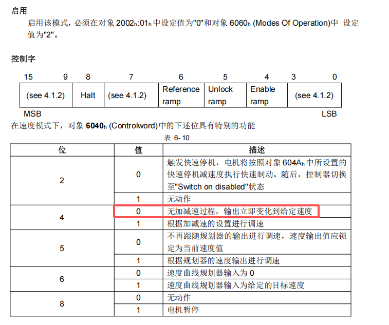 1.VM模式运行,控制字常规是给0X06,0X07,0X7F,此时控制字BIT4位为1,是根据加减速度调速的