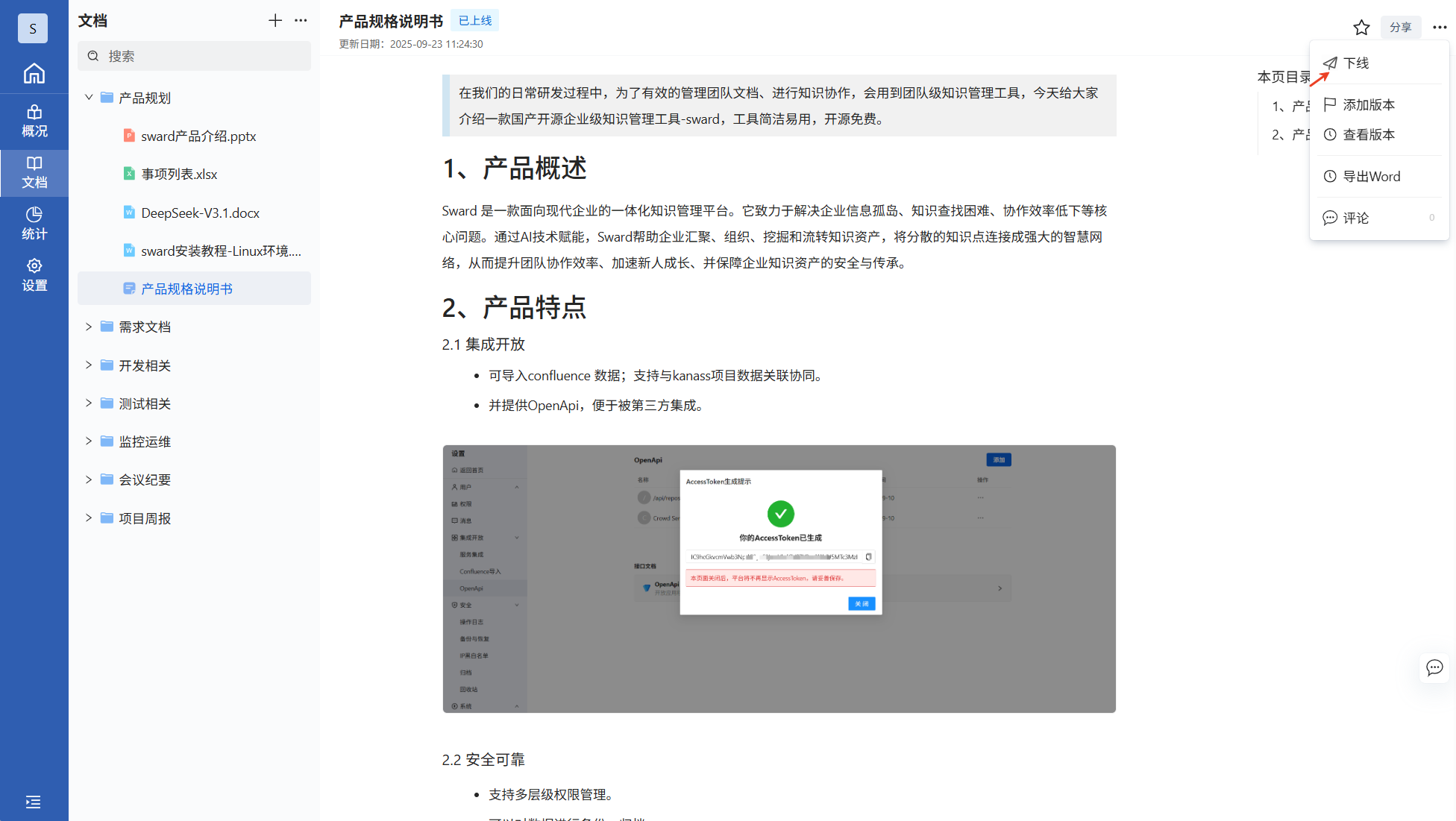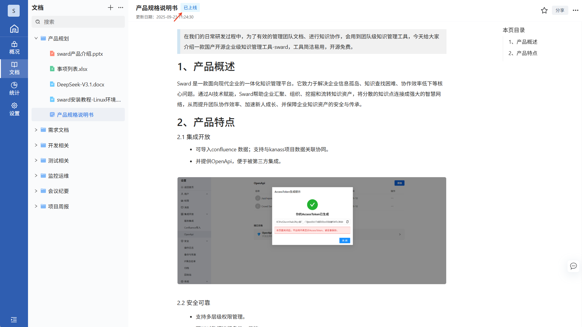 文档评审通过后,文档会自动上线,系统成员可以查看到此文档