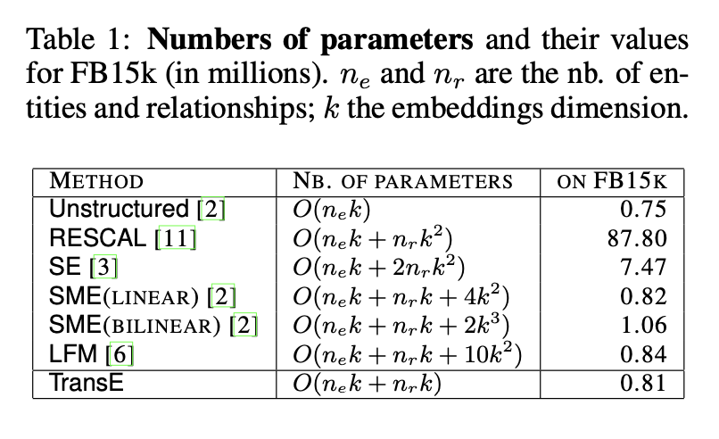 TransE的优异表现源于其模型设计贴合数据特性,同时得益于其简洁性——这种简洁性使其能通过随机梯度高效优化。虽然SE模型(第3节所述)在表达能力上优于TransE,但其复杂性可能导致训练困难,反而表现更差。例如在FB15k数据集上,SE在5万条训练子集上的平均排名为165、hits@10为35.5%,而TransE分别达到127和42.7%,表明TransE更不易欠拟合。