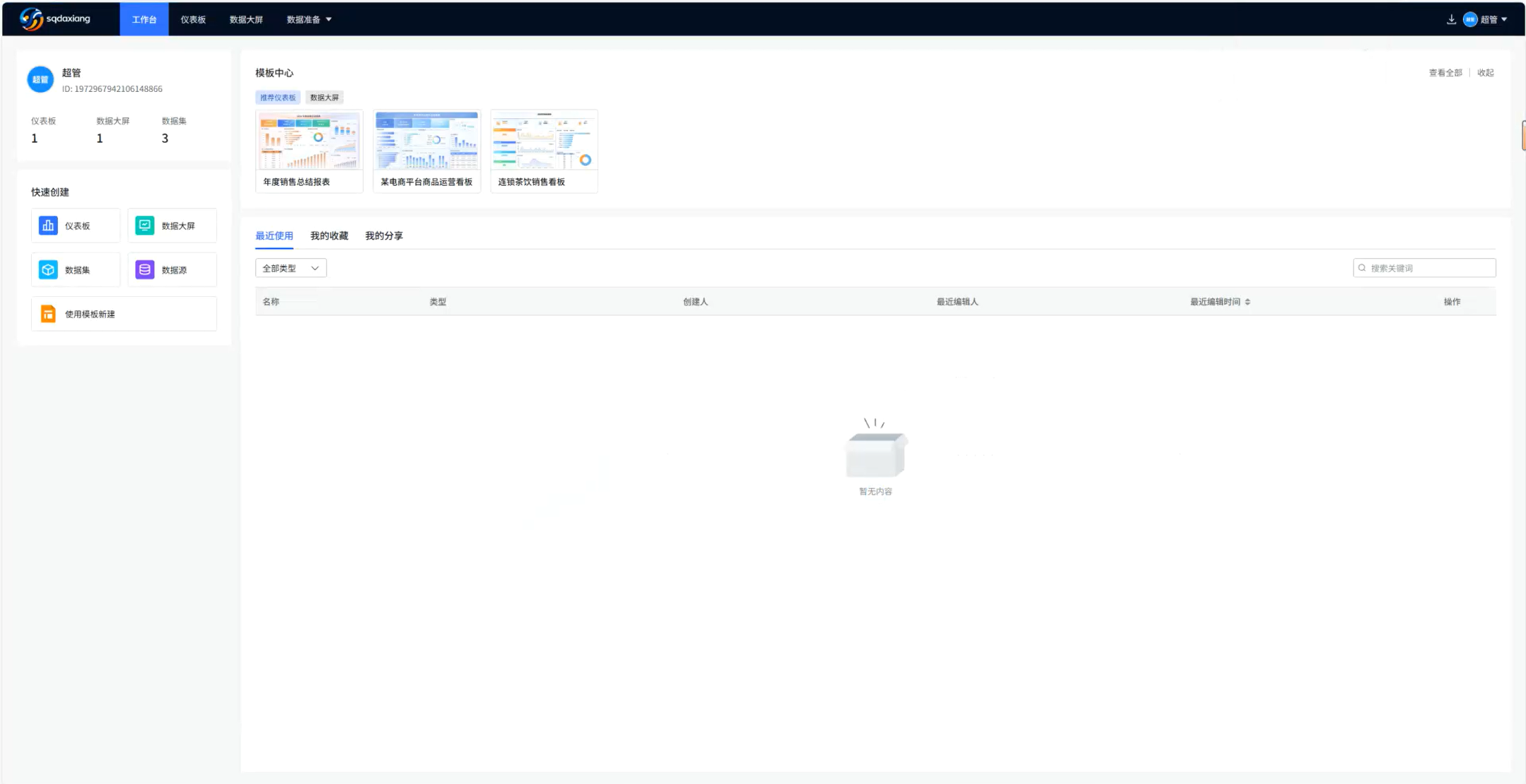 目前可用于同一网络下进行部署,来实现在组织中,组织内任意成员可以进行数据源配置,创建数据集,给组织内成员使用,组织内成员创建仪表盘和数据大屏数据互不影响。